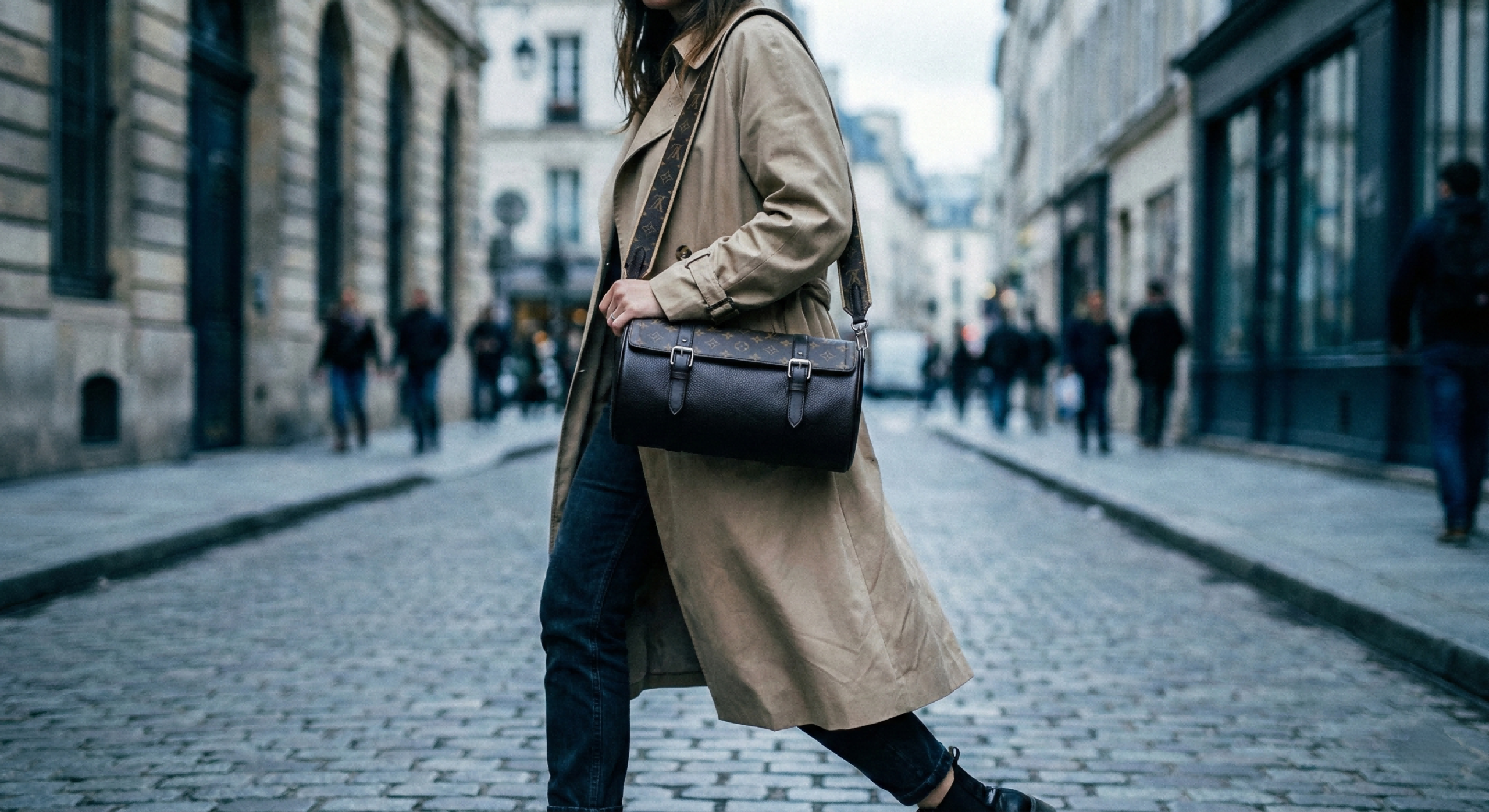The third entry in the most popular 3 LV replica bags for 2026 is a sleek, dark horse: The LV City Barrel (or Cylinder). This bag, featured in dark grainy leather with Monogram canvas straps, caters to the unisex/streetwear aesthetic that is exploding right now.